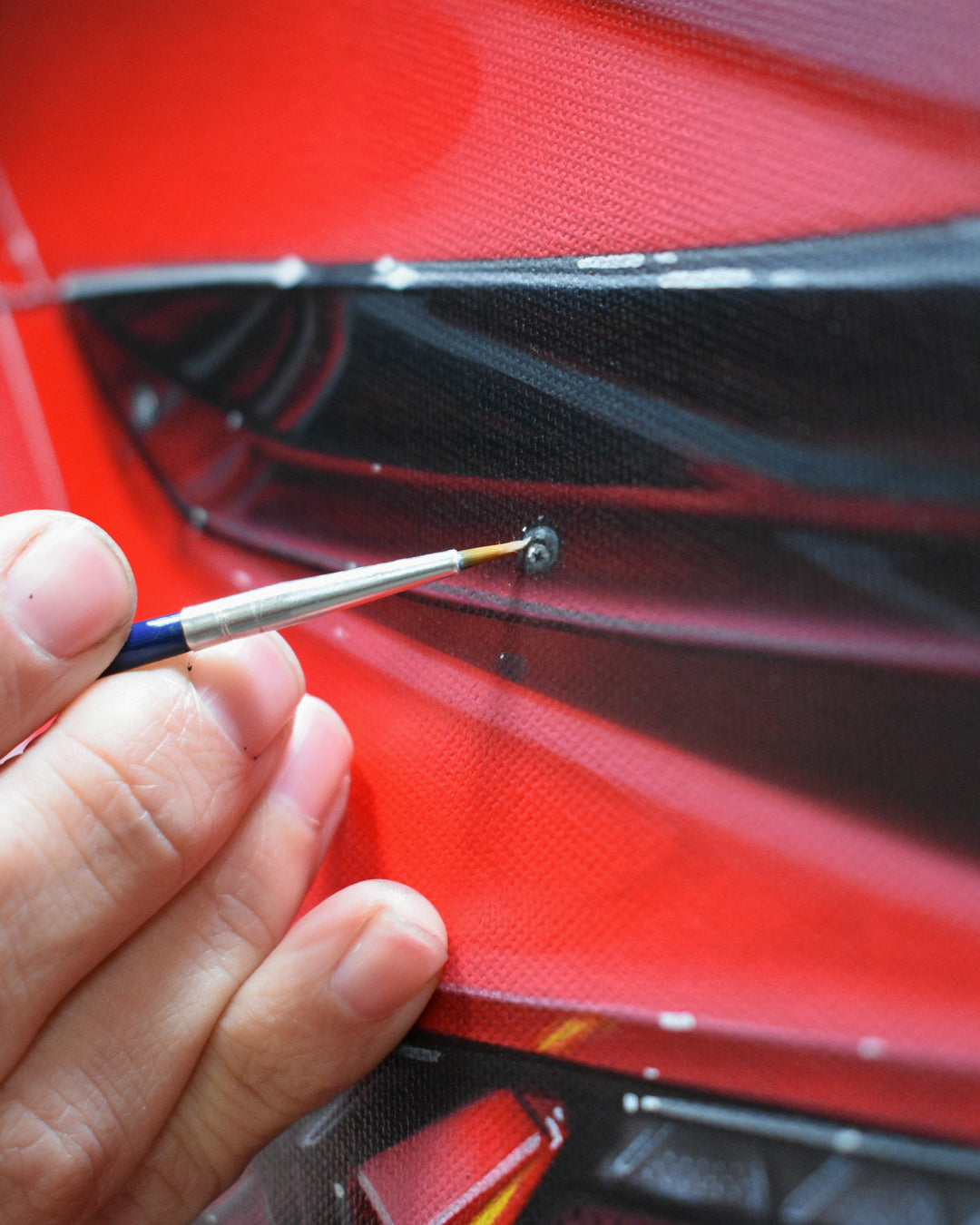 This piece is finished with a Custom Hand Pinstriped to match frame included in the price so artwork arrives Ready to Hang.